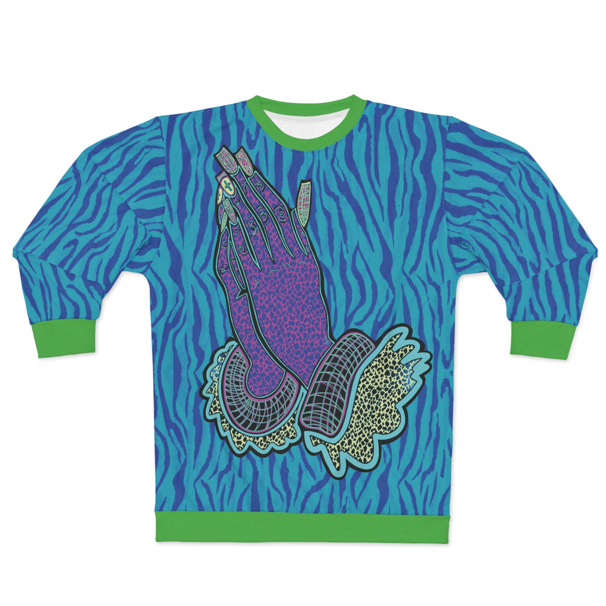 The Praying Hands Maximalist Crewneck | Electric Blue Zebra Print 😇